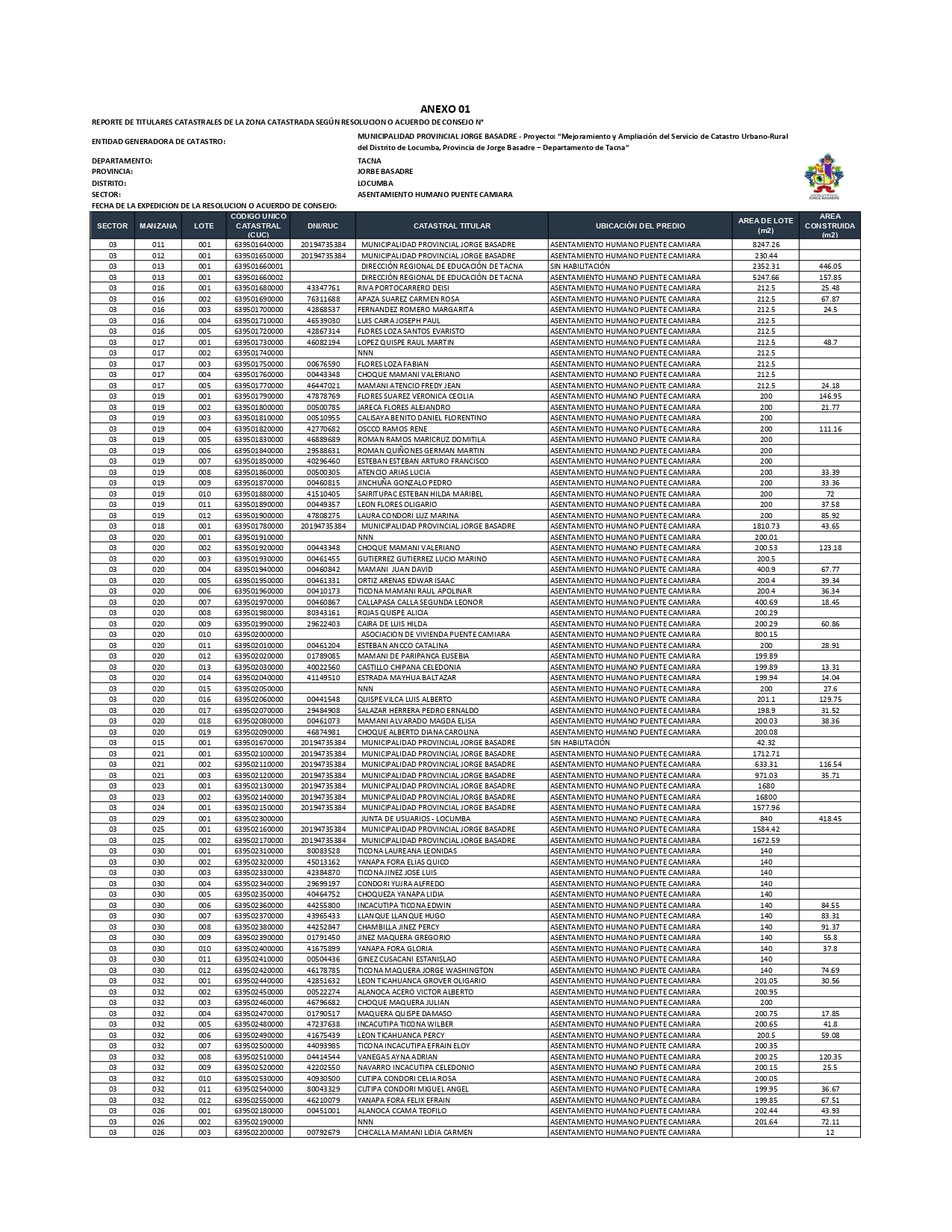 PROYECTO: "Mejoramiento y Ampliación del Servicio de Catastro Urbano-Rural del Distrito de Locumba, Provincia de Jorge Basadre - Departamento de Tacna."