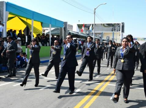 Villa Locumba.- Con firme y gallardo paso de desfile, el alcalde de la provincia Jorge Basadre acompañado de su cuerpo de regidores, funcionarios y servidores públicos saludaron al turístico distrito de ITE en su 55° Aniversario de Creación Política.