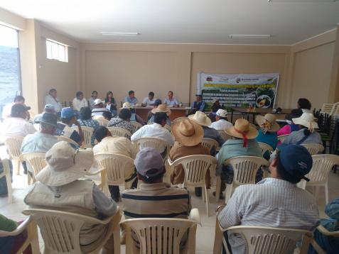 ![]() Cinto.- Cumpliendo con el rol de autoridad municipal y trabajar de cerca con los agricultores del valle de Cinto, el alcalde de la provincia Jorge Basadre, Manuel Oviedo se reunió el último jueves con los agricultores de este importante valle, para analizar, escuchar y solucionar la problemática de este anexo, como ser la comercialización de sus productos en la ciudad de Tacna y no tengan que rematar sus productos a intermediarios, si no que puedan ellos mismos hacer sus ventas al público. Así mismo analizaron el problema hídrico para el abastecimiento de agua para riego y consumo humano y poner en funcionamiento la obra de agua y desagüe para cinto, que la presente gestión hizo realidad, creación de un botiquín municipal para servicio de salud e instalar la electrificación trifásica que es el anhelo para los agricultores y pobladores de este importante valle. En esta reunión también asistió el presidente de los agricultores de Tacna, Hermenegildo García Vargas, como también Manuel Mendoza, presidente de los agricultores del valle de Cinto. La autoridad municipal, Manuel Oviedo, instó a los agricultores a trabajar en unidad para lograr los objetivos de desarrollo para este valle, haciendo un llamado a los agricultores de Conostoco, Monte Grande y los Carzos para que se sumen al trabajo en conjunto por el desarrollo de este anexo. |
