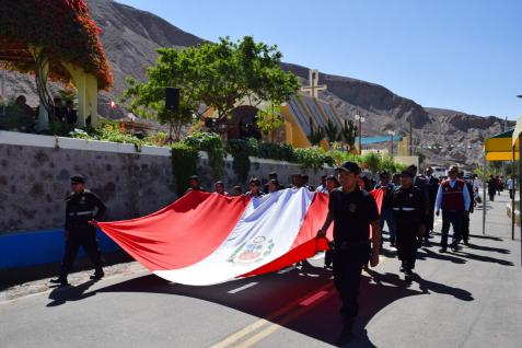 ![]() Oconchay.- Con una ceremonia cívica se recordó 3 años de creación del anexo de Oconchay del distrito de Ilabaya. El gerente de la Municipalidad Provincial Jorge Basadre, Ing. Richard Villavicencio llevó el saludo de la autoridad edil Manuel Oviedo Palacios y toda la provincia a los vecinos del anexo, en la persona del agente municipal Freddy Tintaya, al conmemorar esta fecha especial. Los actos iniciaron con la celebración eucarística, para luego proceder con la procesión de la bandera, izamiento del pabellón nacional y entrega de ofrendas florales. El desfile cívico contó con la participación de distintas delegaciones, que con paso firme y gallardo saludaron a Oconchay. Seguidamente el gerente de la comuna basadrina, acompañó en la inauguración de obra del sistema de riego presurizado para Oconchay y finalmente en la sesión solemne. |