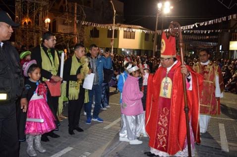 Villa Locumba.- Peregrinos abarrotaron la plaza principal de Locumba para participar de la misa de víspera al Cristo de los pies quemados. La misa fue presidida por el Monseñor Marco Antonio Cortéz, Obispo de Tacna, culminando con una serenata y quema de fuegos artificiales que resaltaron junto a la Devoción y fe al Señor de Locumba.