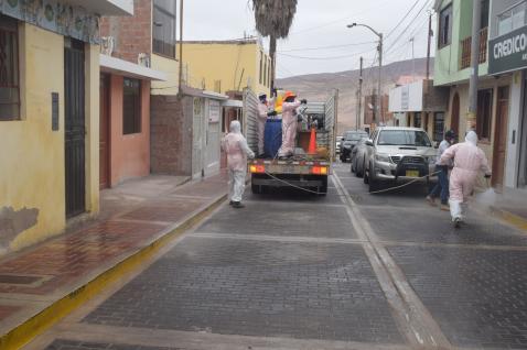 Villa de Locumba. – Ante pandemia mundial Covid-19 la Municipalidad Provincial Jorge Basadre en coordinación con la Subprefectura, Salud, Policía Nacional, Ejercito peruano y Ministerio de Agricultura Base Locumba; realizaron hoy 25 de marzo a las 9:00 am una campaña de desinfección y fumigación de calles y establecimientos públicos en el distrito de Locumba Capital. En dicha actividad estuvo presente el alcalde Félix Morales Mamani junto a sus funcionarios, Subprefecto Américo Coaila Centeno y demás autoridades del distrito.