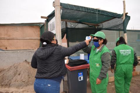 Villa Locumba.- El proyecto de residuos sólidos, del municipio basadrino viene implementando medidas de seguridad frente al Covid- 19 para sus trabajadores, las medidas son adoptadas buscando garantizar la integridad del personal, desde el ingreso hasta que se retira a su vivienda. El responsable del proyecto, Ing. Lino Mamani, señaló que estas medidas se adecúan a los nuevos planes de trabajo que marca el ministerio de salud y que la comuna Jorge Basadre está desarrollando. Distanciamiento, paso por el pediluvio, lavado de manos y toma de temperatura es el protocolo a seguir para iniciar sus labores. A cada trabajador se le ha marcado una gaveta para guardar su ropa habitual y emplear el mameluco laboral. Este sistema se sigue tanto al iniciar como al final del día trabajado.