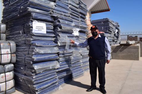 Tacna.- En instalaciones del Centro de Emergencia Regional- COER, el alcalde de la provincia Jorge Basadre, Félix Morales Mamani, recepcionó una serie de implementos para abastecer el almacén de defensa civil del municipio basadrino. El almacén adelantado, ayuda a la acción inmediata en caso se requiera con urgencia y las vías de comunicación sufran bloqueos, por lo que el gobierno local tiene a disposición todo este material. Entre el equipamiento para el almacén se pudo recibir barretas, carretillas, frazadas, ollas, botas, carpas, calaminas, entre otros materiales más. Esta entrega la realizó la directora del COER- Tacna, Bárbara Cuadros, en el plan de reabastecer los almacenes para planes de acción inmediata en caso de desastre, todo de acuerdo al plan anual de heladas y bajas temperaturas. |