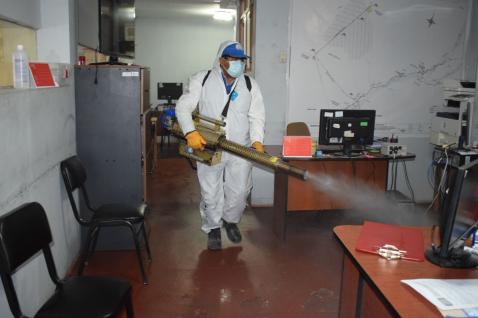 Tomando las medidas preventivas frente al Covid-19, la comuna basadrina viene realizando diversas acciones buscando frenar este mal en su población, por ello se procedió con la desinfección de ambientes municipales, a cargo del personal de la sub gerencia de servicios públicos y gestión ambiental. Como ya es de conocimiento, se ha restringido la atención presencial al público desde el 01 al 14 de febrero, por lo que estos trabajos se vienen realizando en horarios que no afecten el desarrollo de las funciones laborales.