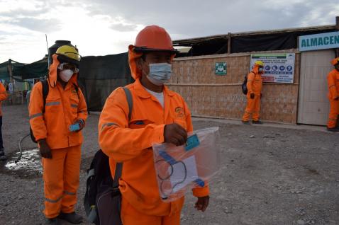 Se continúa con la distribución de protectores faciales a los vecinos de Locumba. Esta vez un grupo de trabajadores de obras recibió este aditamento que aunado al uso de mascarilla, distanciamiento y lavado de manos, buscan una mayor protección de la persona ante el covid-19.