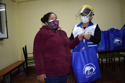 Continúa la distribución de los kits de bioseguridad por parte del proyecto “Mejoramiento del Servicio de Gestión Ambiental Local” de la gerencia de Desarrollo Social. Esta vez se realizó esta tarea en el anexo de Sagollo.