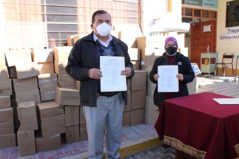 El alcalde basadrino, Félix Morales Mamani, realizó la entrega de equipos y materiales necesarios al centro de salud de Locumba, para seguir afrontando la pandemia.