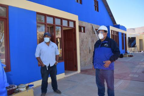 ![]() Con 7 ambientes para el aislamiento de pacientes covid y 14 camas, se viene culminando los trabajos del Centro de Asistencia Temporal, obra del “Mantenimiento del Instituto Tecnológico Superior Jorge Basadre III Etapa, Zona Albergue, Distrito Locumba”. El alcalde basadrino, Félix Morales Mamami, realizó la visita de inspección de obra, donde se viene culminando las labores de pintado. Así mismo en los próximos días, ya están llegando al distrito concentradores de oxígeno medicinal, que se complementarán en este centro de aislamiento. La lucha contra la Covid-19 aún continúa, por lo que se recomienda a la población mantener los métodos preventivos. |