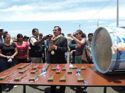 ![]() El viernes 09 de Enero del presente año, nuestro alcalde, MANUEL OVIEDO PALACIOS, asistió junto a otras autoridades como la Señora Teresa Luna de Guerra, jefa de relaciones públicas de la empresa Southern, Renan Carnero, responsable de relaciones comunitarias de Jorge Basadre; Juan Barrocal, gobernador provincial de Jorge Basadre; Guzman Fernández, Vice-Presidente Regional, Nixon Mamani Mamani, Consejero Regional por la provincia Jorge Basadre; Jesus Mamani Quispe, Alcalde del CPM Pampa Sitana, Anastacio Choque Ccaritaine, presidente de la asociación de agricultores de Pampa Sitana y el pueblo en general, al XIV aniversario de fundación de la Asociación de Agricultores de Pampa Sitana, en el cual nuestro alcalde entregó en cesión en uso, una camioneta al pueblo de Pampa Sitana, compromiso que fue plasmado junto con instrumentos para su propio Conjunto de Zampoñas, compartiendo junto al pueblo momentos alegres en esta magna fecha. |
