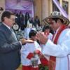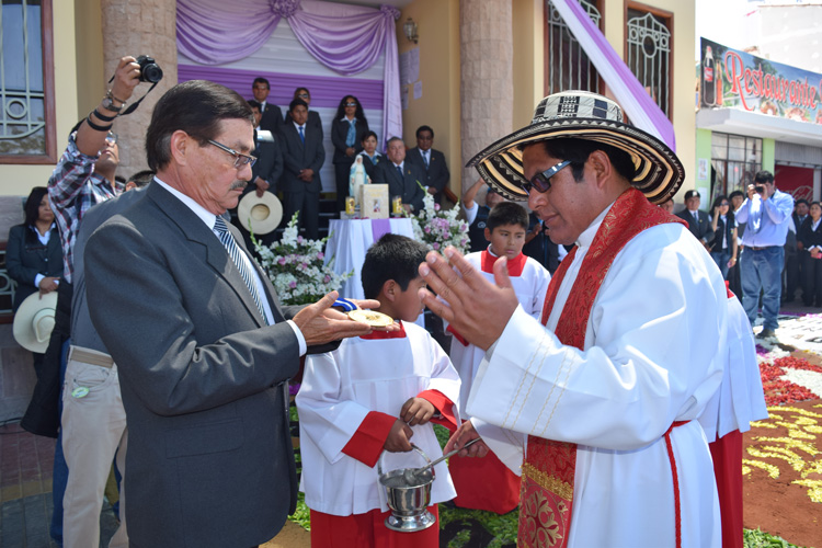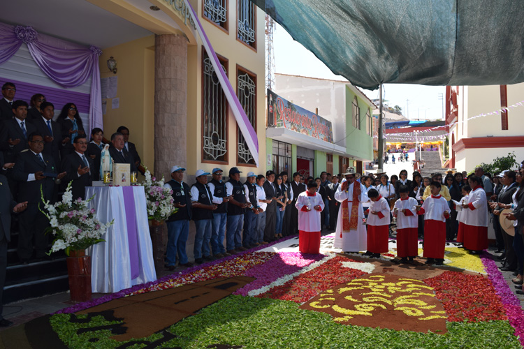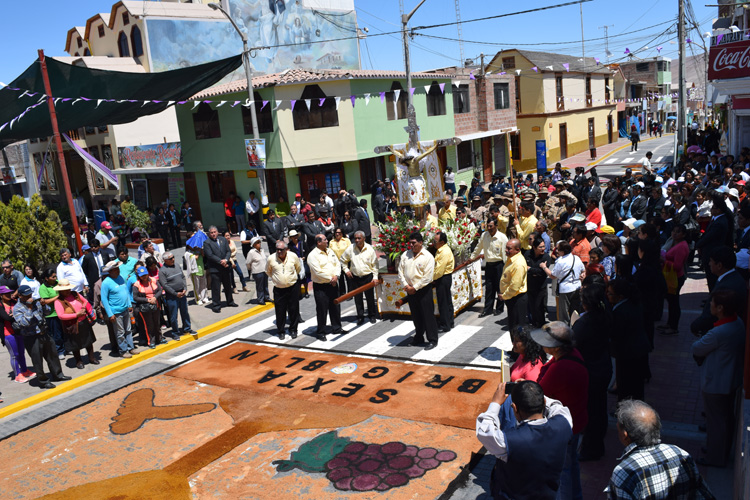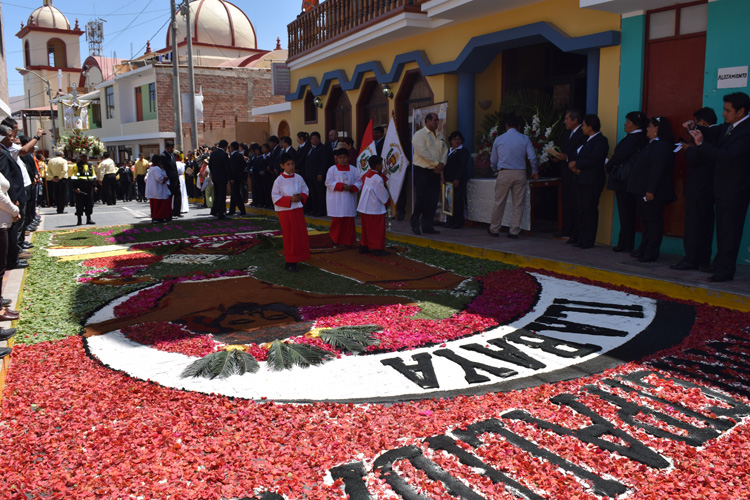 Durante el paso del Señor de Locumba por el altar y alfombra del municipio basadrino, el alcalde Manuel Oviedo Palacios hizo entrega de un medallón de reconocimiento a la sagrada imagen además de elevar plegarias por toda la provincia.