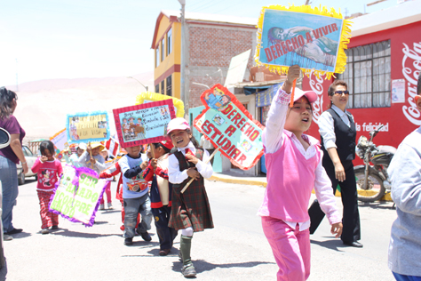 Locumba.- Con pancartas en mano los alumnos de la institución educativa inicial Nº 231 Villa Locumba realizaron el 21 de noviembre una marcha de sensibilización por las diversas calles la capital de la provincia, exigiendo el respeto a sus derechos.