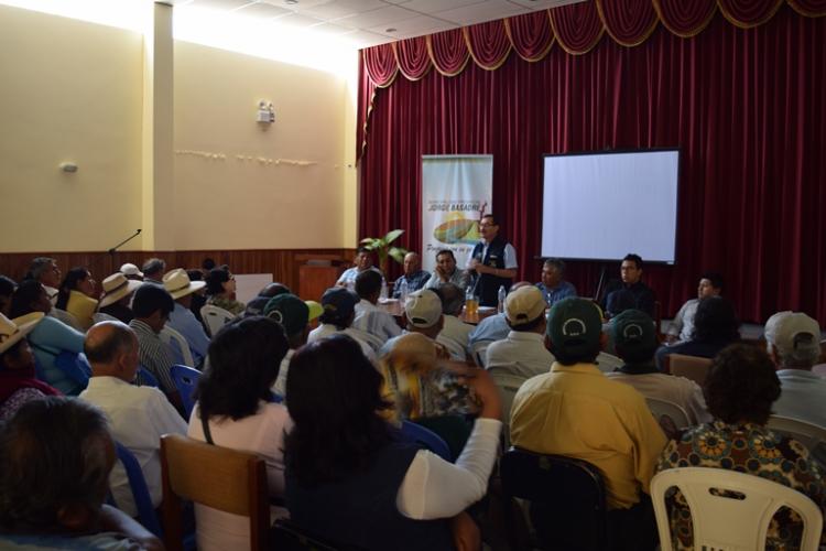 Locumba.- La mañana del miercoles 2 de diciembre, el alcalde de la provincia Jorge Basadre, Manuel Oviedo Palacios, se reunió con la directiva en pleno de la Comisión de Regantes y los agricultores de Locumba, a fin de informar acerca del destino del aporte de la empresa Southern Perú incluido en el fondo de desarrollo para el “PLAN INTEGRAL DE DESARROLLO AGROPECUARIO PARTICIPATIVO DEL DISTRITO DE LOCUMBA” . La reunión tuvo lugar en el auditorio de la municipalidad, en la cual se tomaron acuerdos en los que se explicó a los agricultores que la próxima semana los equipos técnicos-legales de la empresa Southern y de la Comuna de Jorge Basadre, tendrán una reunión a fin de acordar el proceso de estudio de línea base del plan integral de desarrollo agropecuario de Locumba, después que se presenten los términos de referencia de los mismos. En esta reunión nuestro Alcalde Provincial, también escucho la problemática actual de los agricultores de Locumba para la solución respectiva a sus demandas.