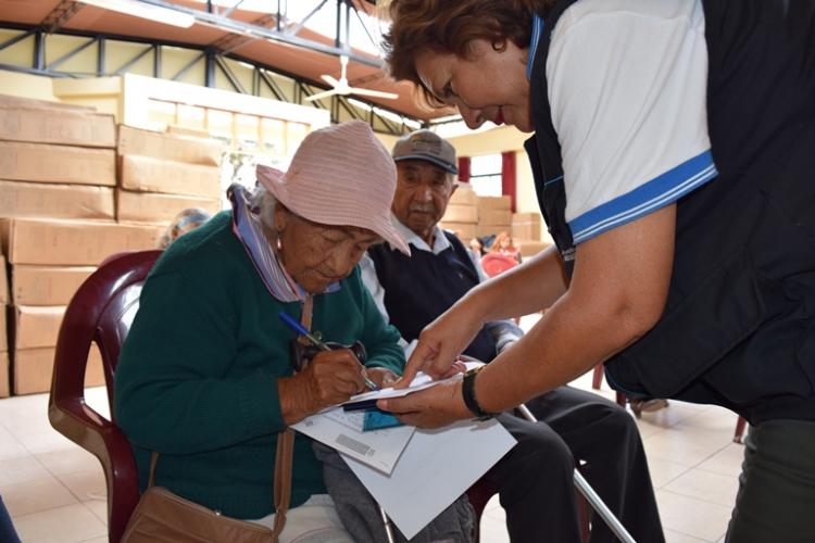 La entrega publica se desarrolló la mañana del viernes 11 en el auditorio del Hogar Geriátrico en Tacna, hasta el lugar llegaron algunos adultos mayores del distrito Locumba, acompañados por la gerente de Desarrollo Social y Servicios Públicos.