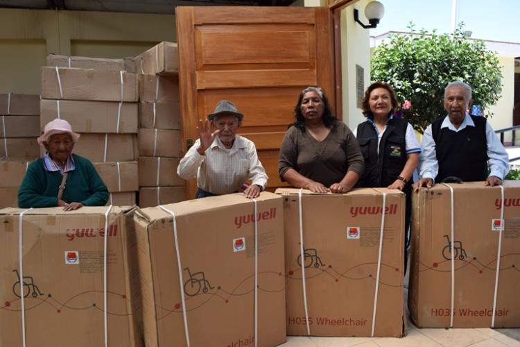 Tacna.- Gracias a una donación de la Beneficencia Pública de Tacna hacia el municipio basadrino, se consiguieron 11 sillas de ruedas que serán entegadas a los adultos mayores y personas con discapacidad.