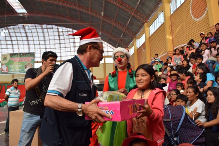 Locumba.- Como parte de las actividades programadas por las fiestas de navidad 2015, nuestro alcalde, Manuel Oviedo Palacios participo del agasajo a los niños del Distrito y anexos de Locumba. Esta actividad se llevo a cabo la tarde del viernes 18 de diciembre en coordinación con la Empresa Southern Perú en el Coliseo Municipal de nuestro Distrito, acogiendo a más de 600 niños de diferentes partes de Locumba.