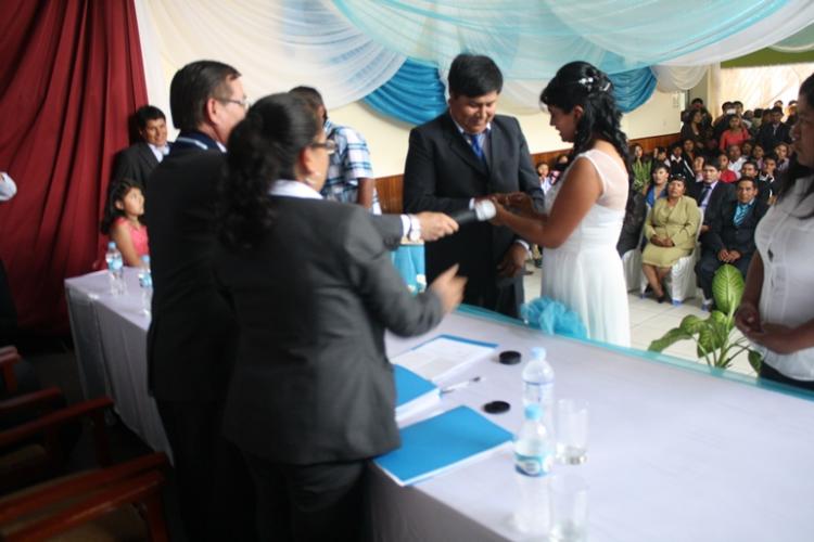 Fueron ocho las parejas que participaron de este acto celebratorio las cuales asistieron con sus respectivos testigos y familiares al auditorio municipal de la comuna provincial. Acontecimiento que empezó con las palabras de bienvenida de la autoridad edil, luego la jefe de la oficina de registro civil de la municipalidad dio lectura de los artículos respectivos del código civil.