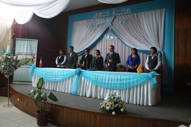 Locumba.- Tal como estaba programado por la oficina de registro civil de la municipalidad Provincial de Jorge Basadre, la mañana del sábado 19 de diciembre, se llevo a cabo el matrimonio comunitario en el cual participo el alcalde provincial, Manuel Oviedo Palacios, quien tuvo a bien declarar la unión de los contrayentes.